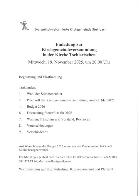 Herzlich Willkommen auf der Homepage der reformierten Kirchgemeinde Steinbach