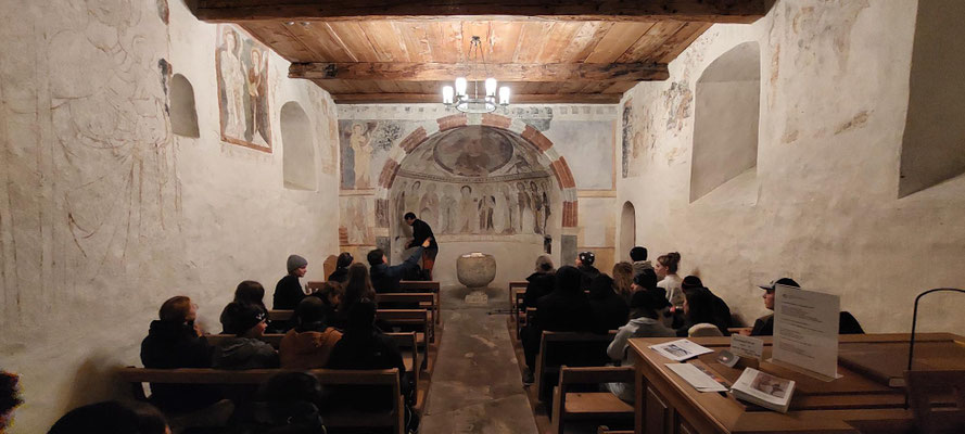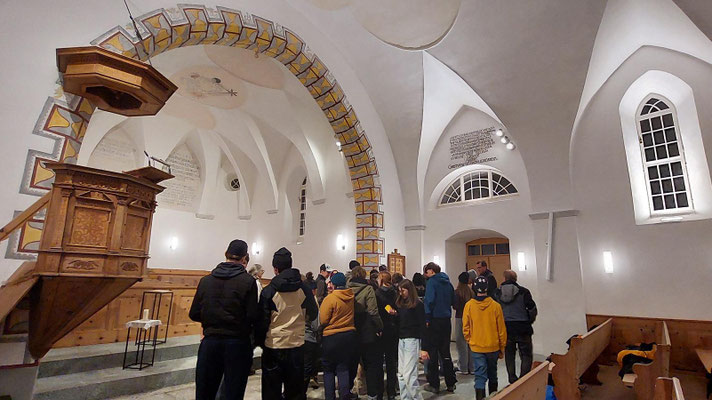 Der Architekturvortrag von Daniel Walser über den Architekten Andres Liesch eröffnete das Wochenende. Giovanni Zanetti berichtete über den Glockenaufzug und Ruedi Müller erinnerte an die Geschichte, wie es zum Kirchenbau in Passugg-Araschgen kam.