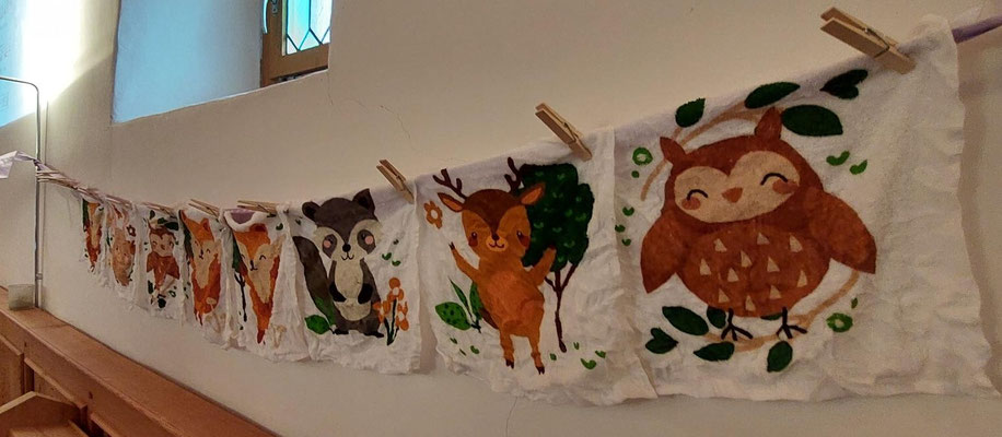 Im Religionsunterricht in Maladers, Praden und Tschiertschen (Klasse 1 bis 6) haben die Schulkinder das Bilderbuch „Zuhause kann überall sein“ gelesen. In diesem Buch erlebt ein Mädchen, welches flüchten musste, dass Worte und Gefühle, wie eine schützende Decke sein können. Nach und nach gelingt es dem Mädchen im neuen Land durch eine kleine Freundin wieder eine „Decke der Geborgenheit“ zu weben.